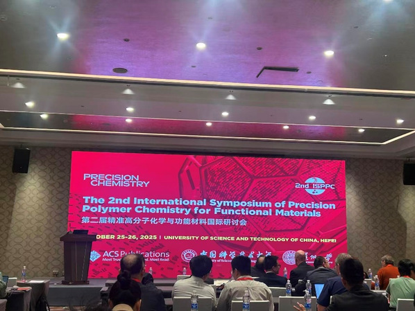 10.25-26,我组同学参加了精准高分子化学与功能材料国际研讨会,此次会议聚焦于高分子科学的“精准化”核心发展趋势,议题广泛涵盖了精准合成方法学(如活性聚合、点击化学)、可控自组装技术、生物医用高分子的设计与应用,以及面向能源与环境的新型高分子材料等前沿方向。陈老师做了题为“Non-Covalent Synthesis of FunctionalSaccharide-based Macromolecules”的会议报告。